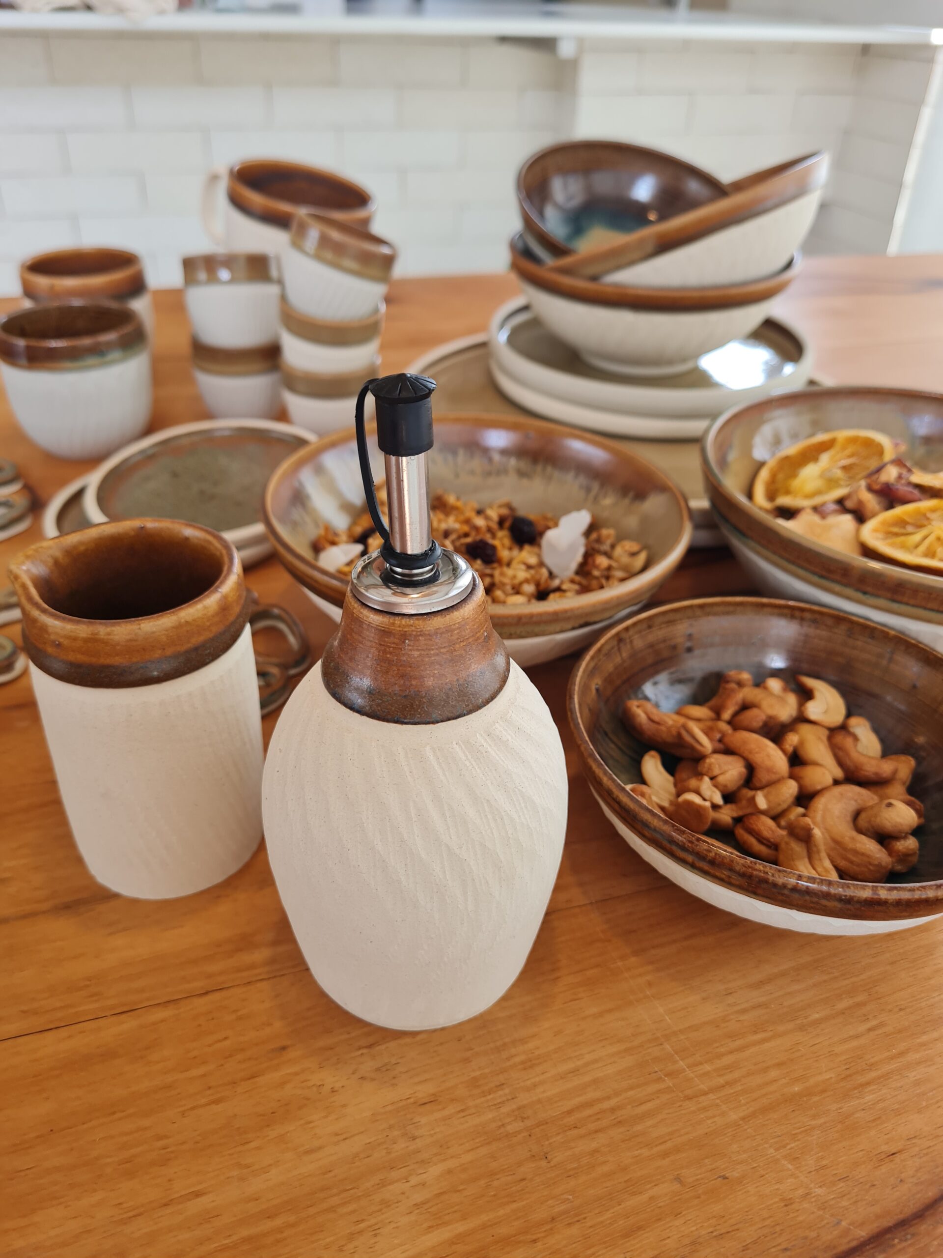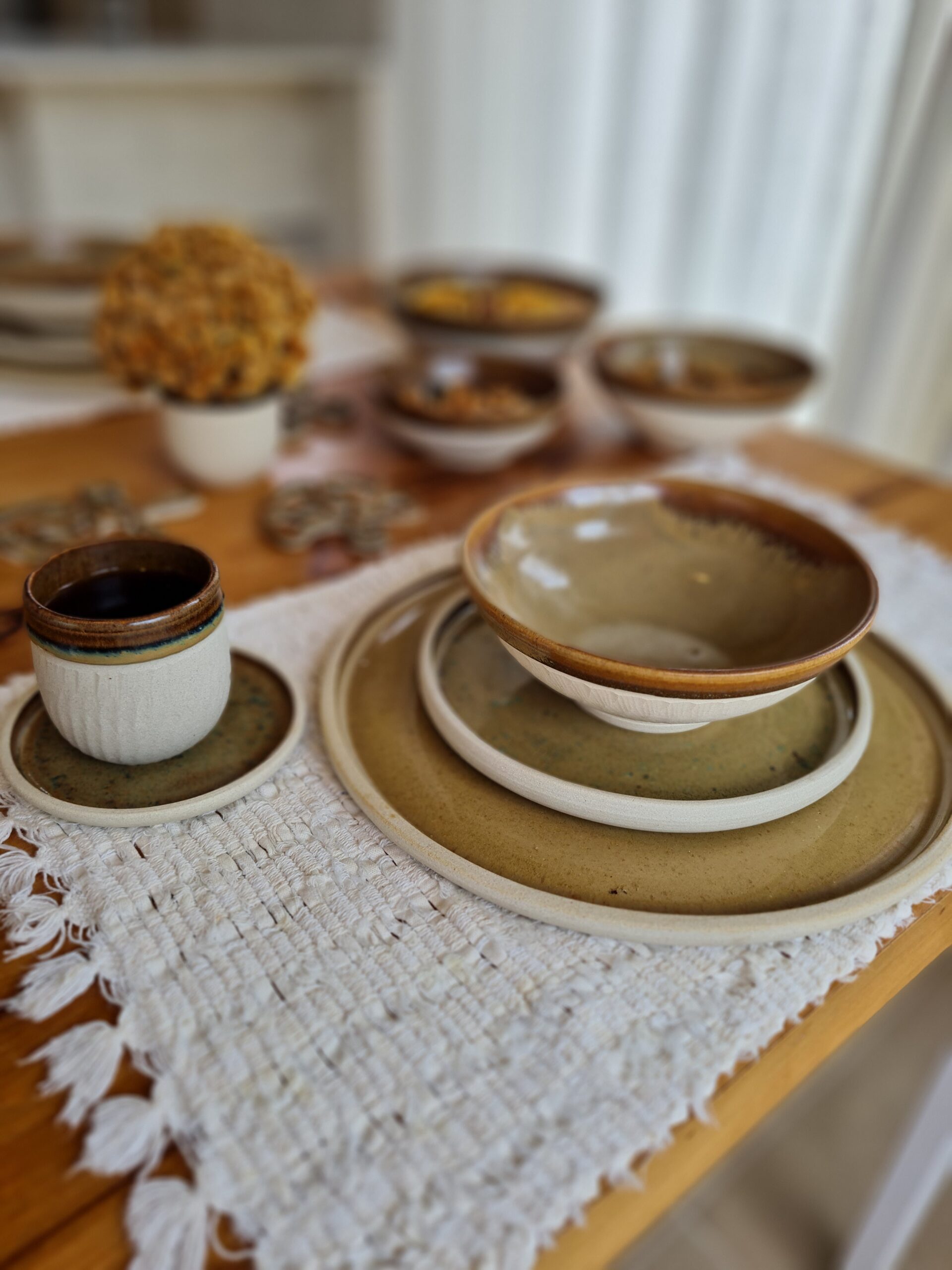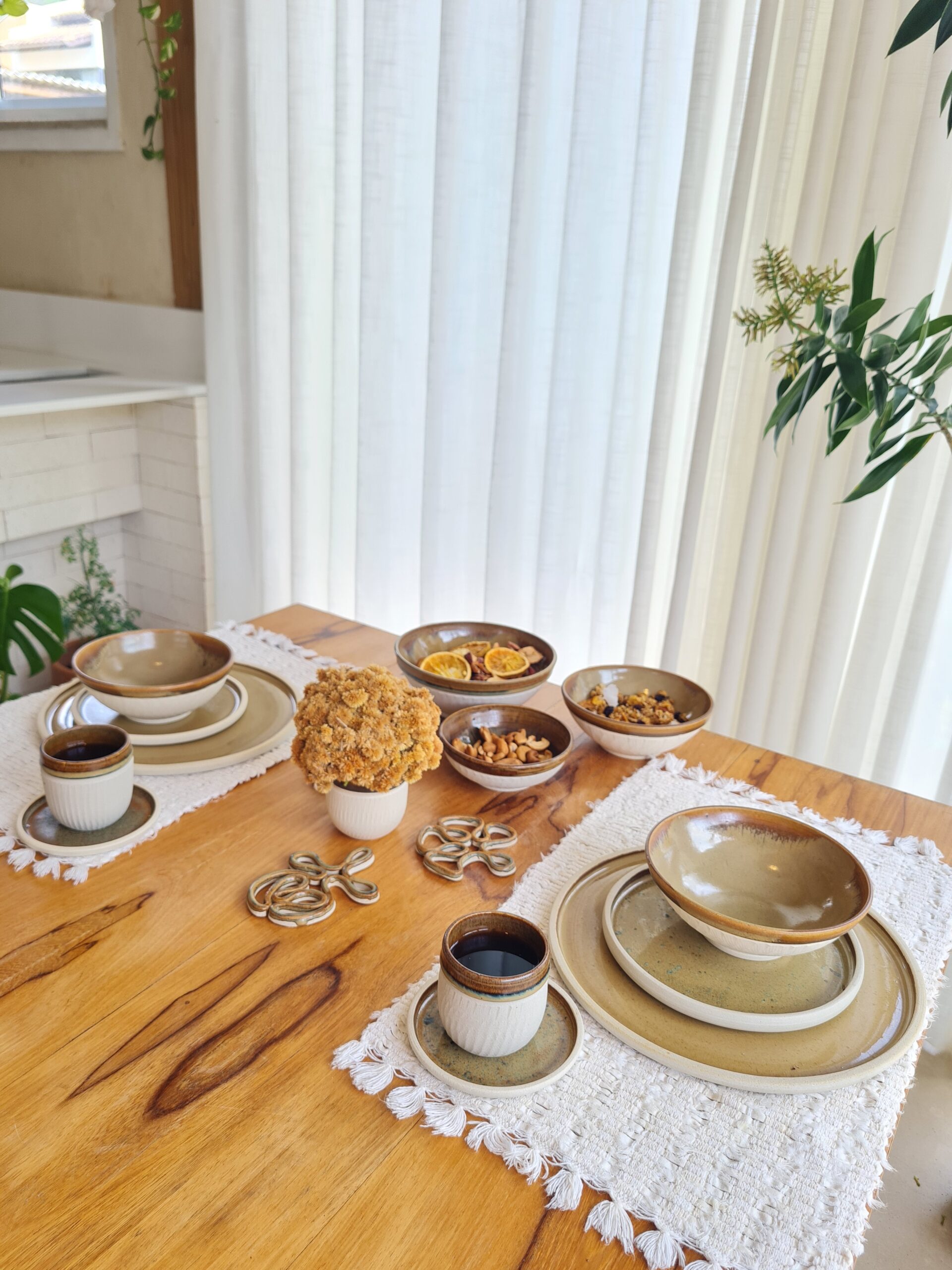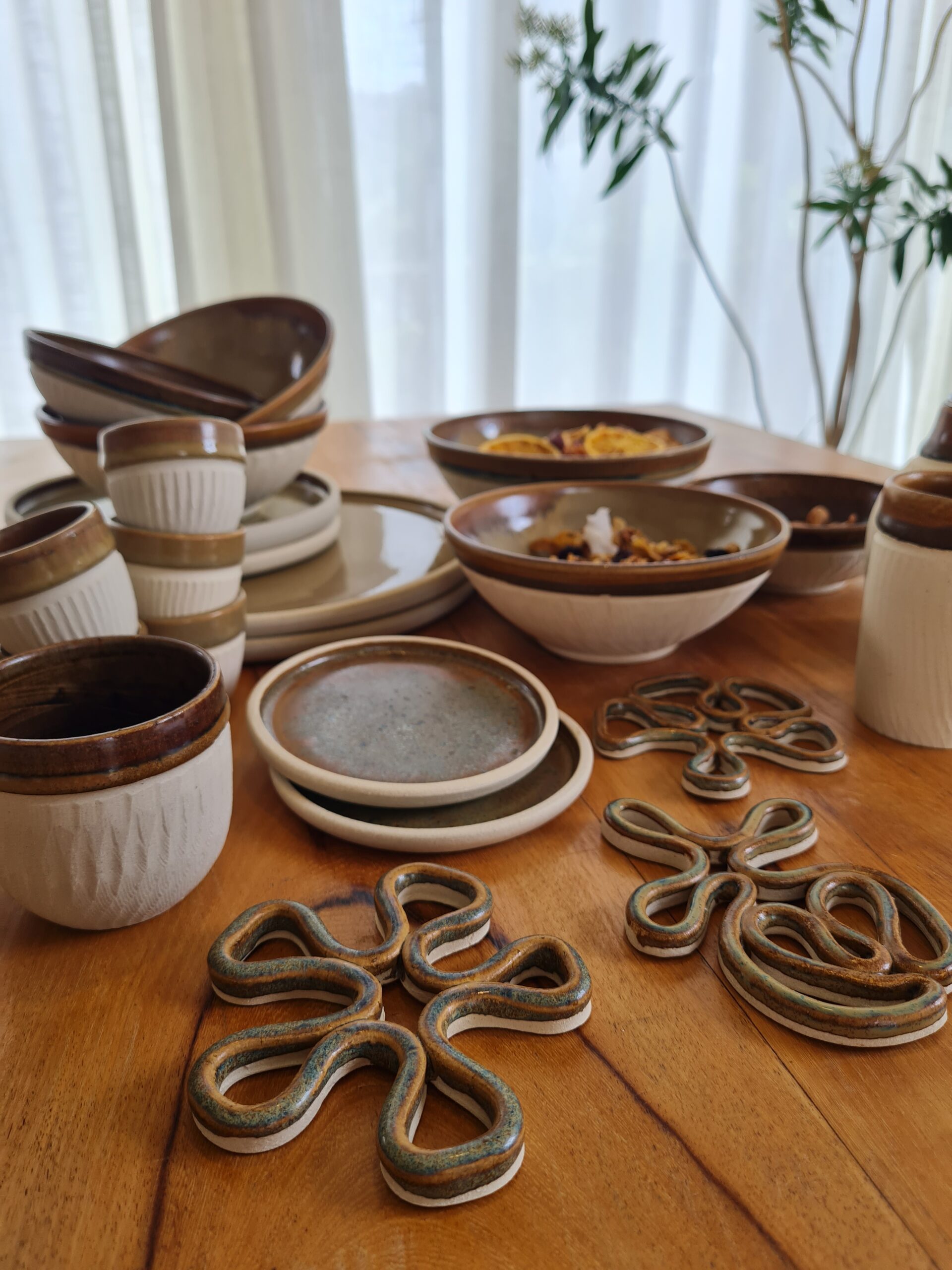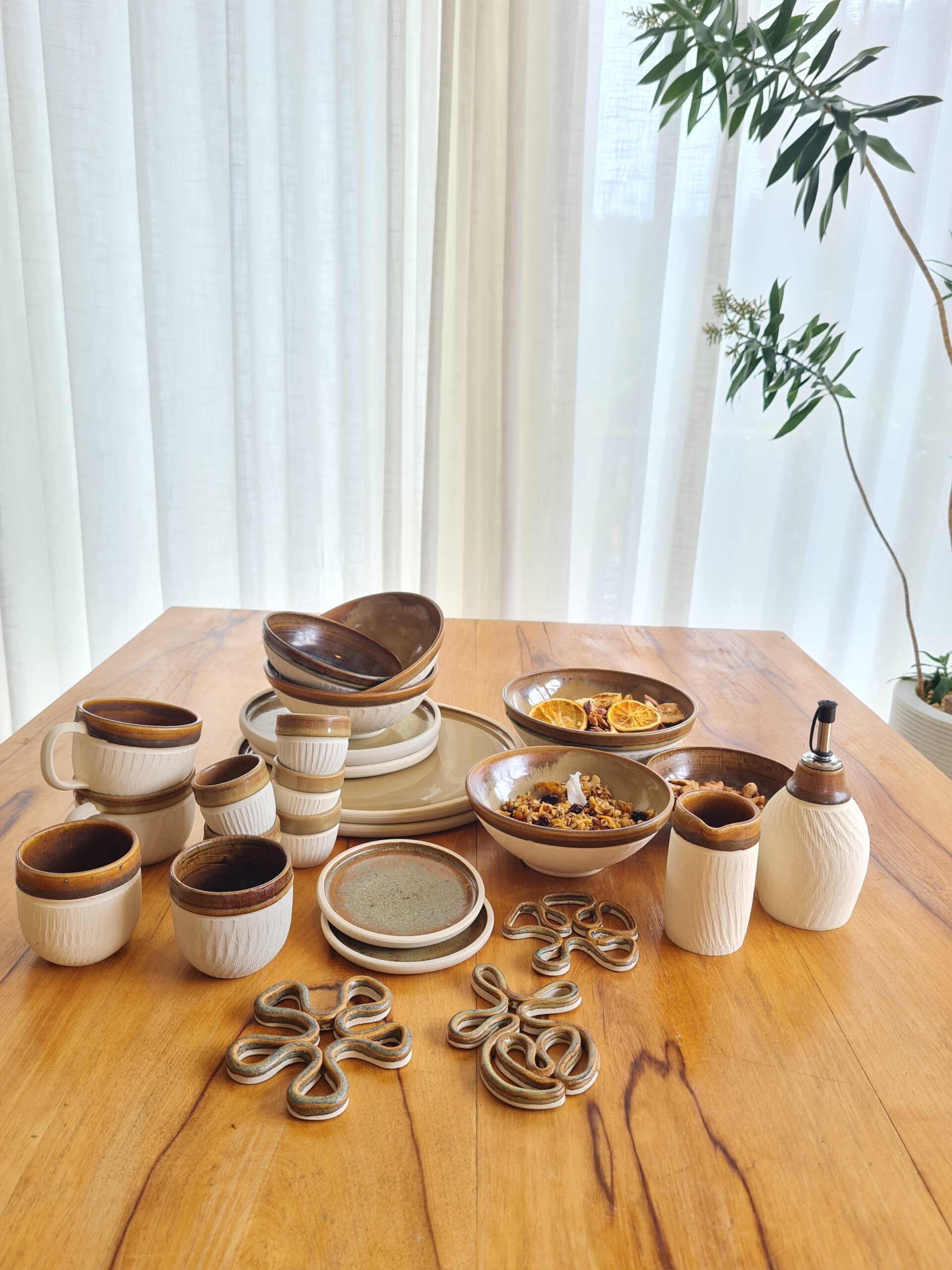 Mariana de Souza Fazzi nasceu e vive em Florianópolis, cresceu em meio a rendas de bilro e confecção de redes de pesca da família açoriana, criando assim o gosto pelas manualidades. Em 2018, ao passar por um desafio pessoal, encontrou na cerâmica um chamado para aterrar e voltar ao centro. Construiu a marca Artifazzi a partir de simbolismo e brincadeiras, é a arte da Fazzi que adora produzir com as mãos, mas também é a artífice que busca compartilhar beleza e qualidade nas suas peças dedicando-se à criação de peças utilitárias que unem simplicidade, equilíbrio e presença. Seu trabalho começa na necessidade do toque centralizador que é uma forma de reconexão com o tempo e com o essencial e continua no desejo de transformar aquilo que transborda dentro de si em peças que compartilham essa intenção.